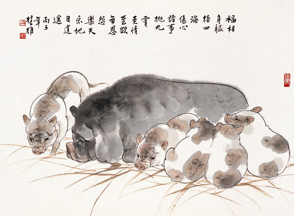 款识:福相身躯扬四海,伤心诸事抛九霄。至情至欲无恩怨,乐天乐地乐逍遥。丙子年楚雄。